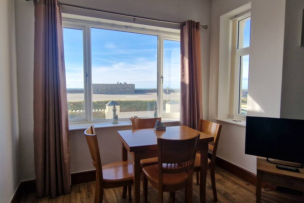 Ground floor apartment with seaview. Two double bedrooms, one bathroom with bath and a fully equipped kitchen.