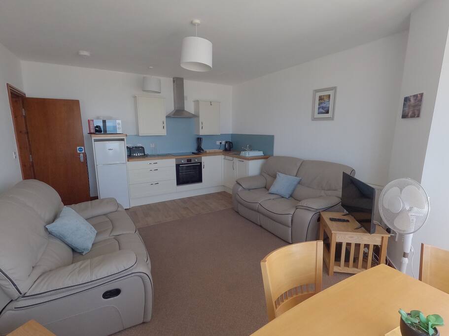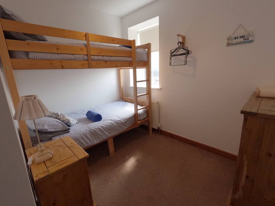 First floor apartment with stunning sea views. Two bedrooms one with double bed, the other with bunk beds. fully equipped kitchen and a bathroom with bath and shower.
